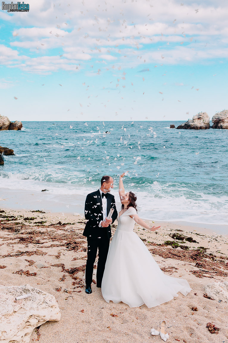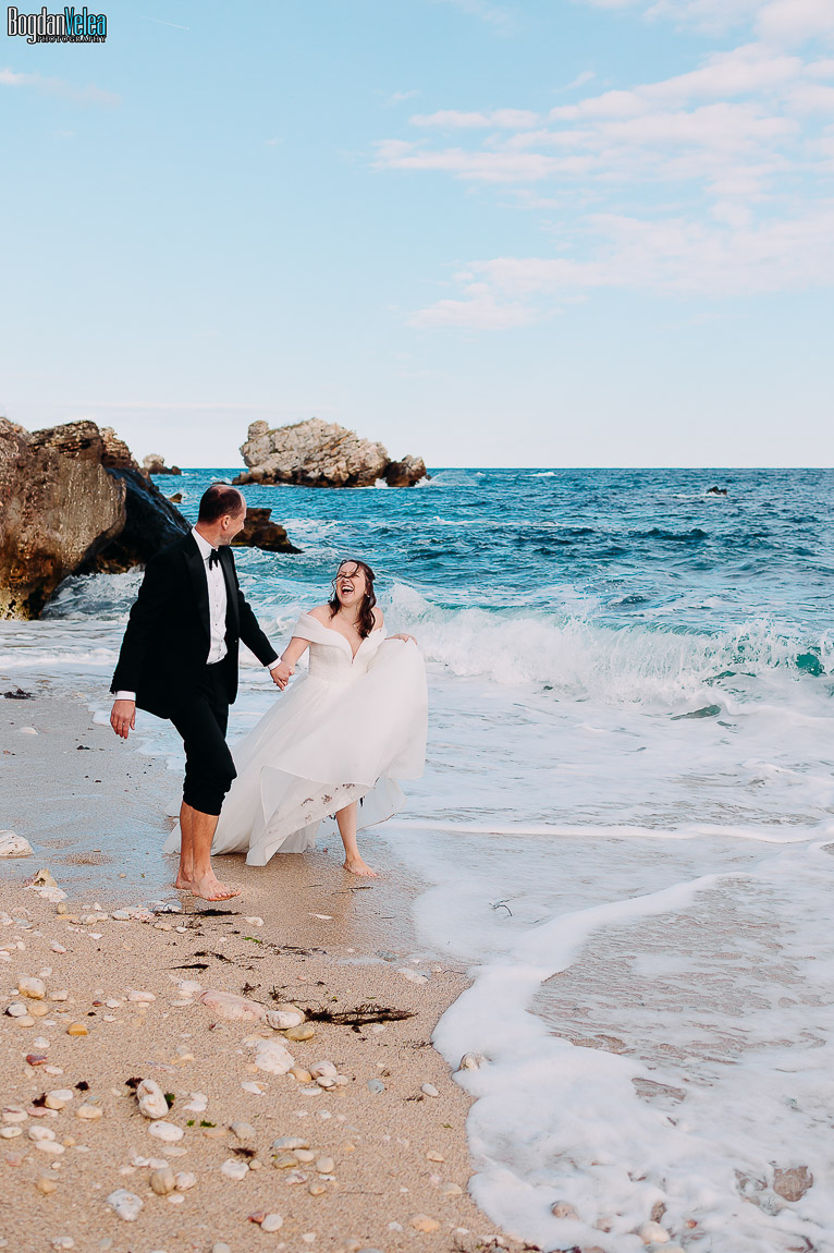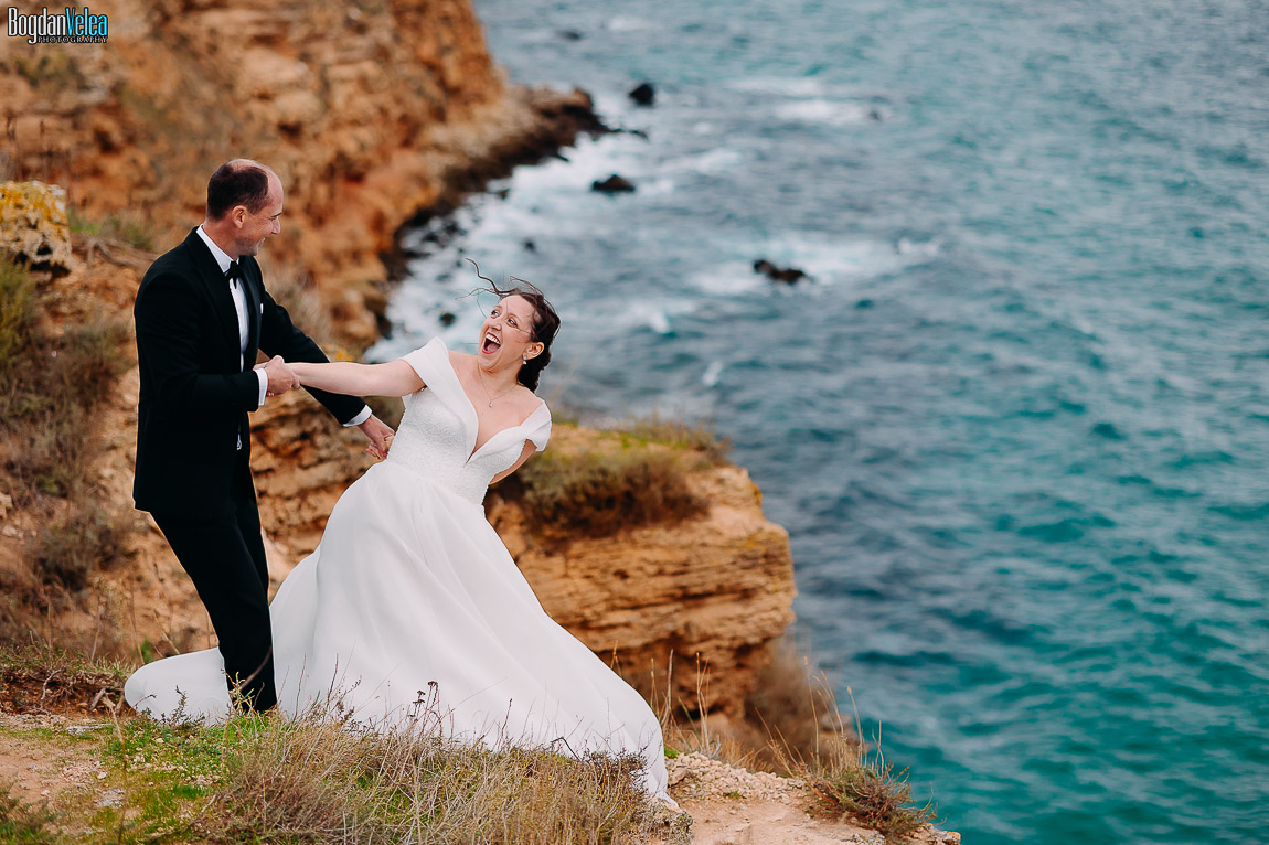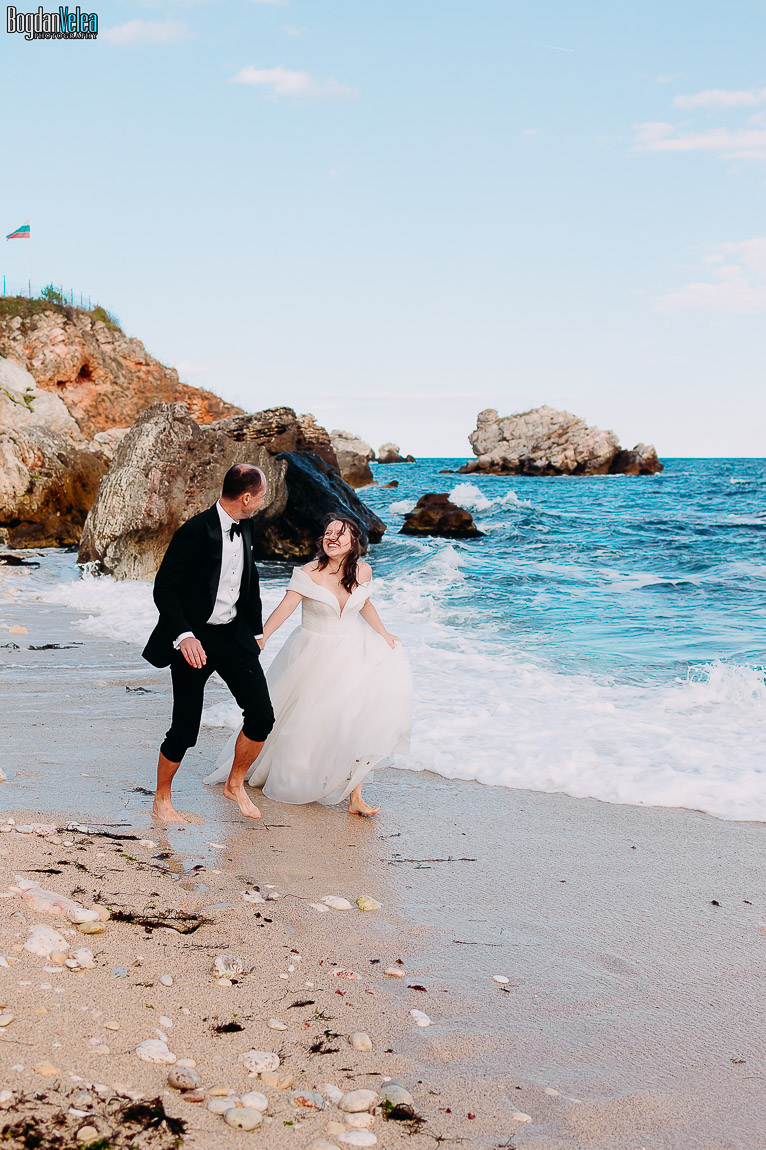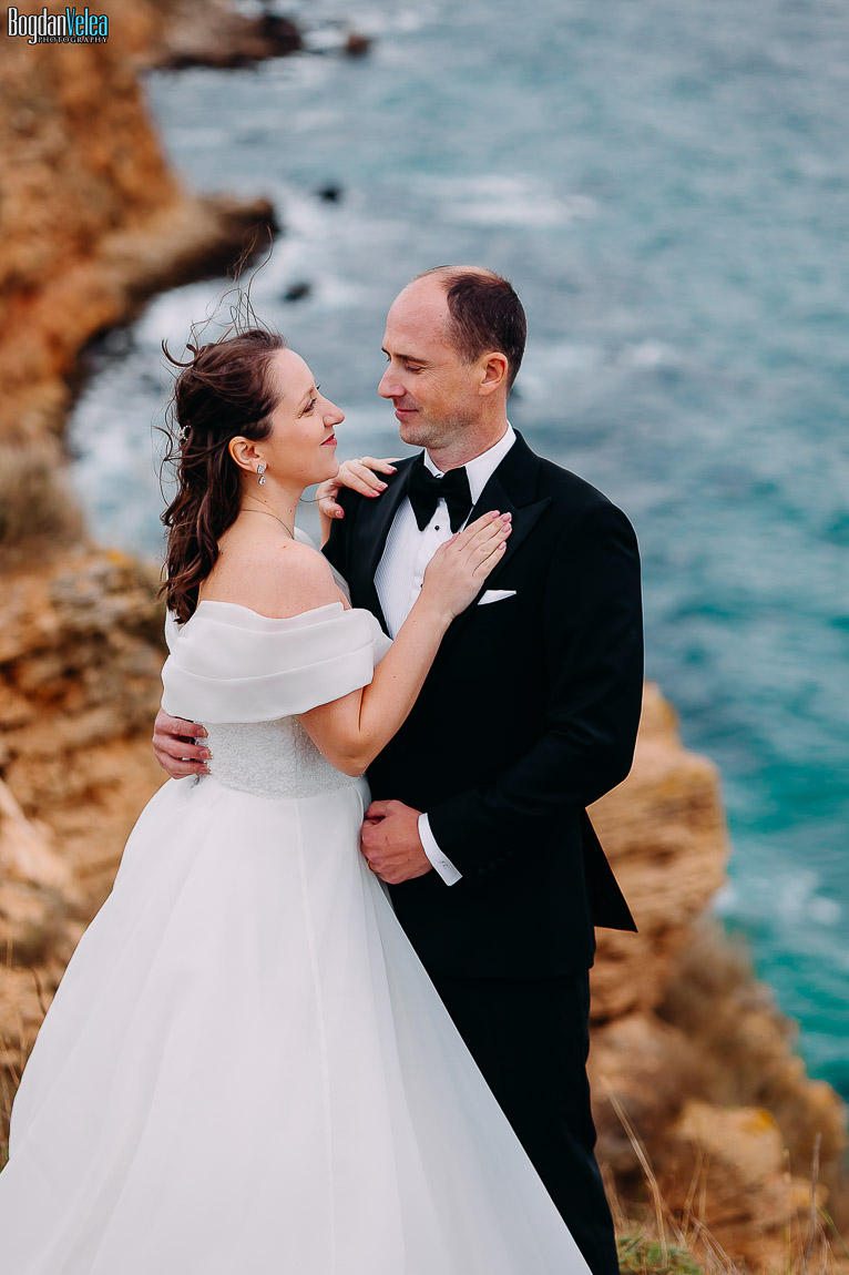 Cu Daniela și Florin am continuat povestea lor în Bulgaria, în locuri spectaculoase de pe malul Mării Negre. A fost o ședință foto după nuntă trăită exact așa cum au simțit: natural, fără machiaj, fără reguli stricte. Spre finalul zilei au renunțat la pantofi și au intrat desculți în apă, bucurându-se pur și simplu de moment.