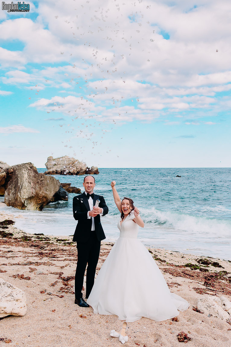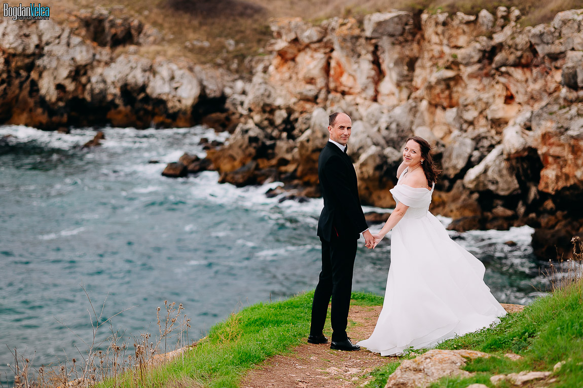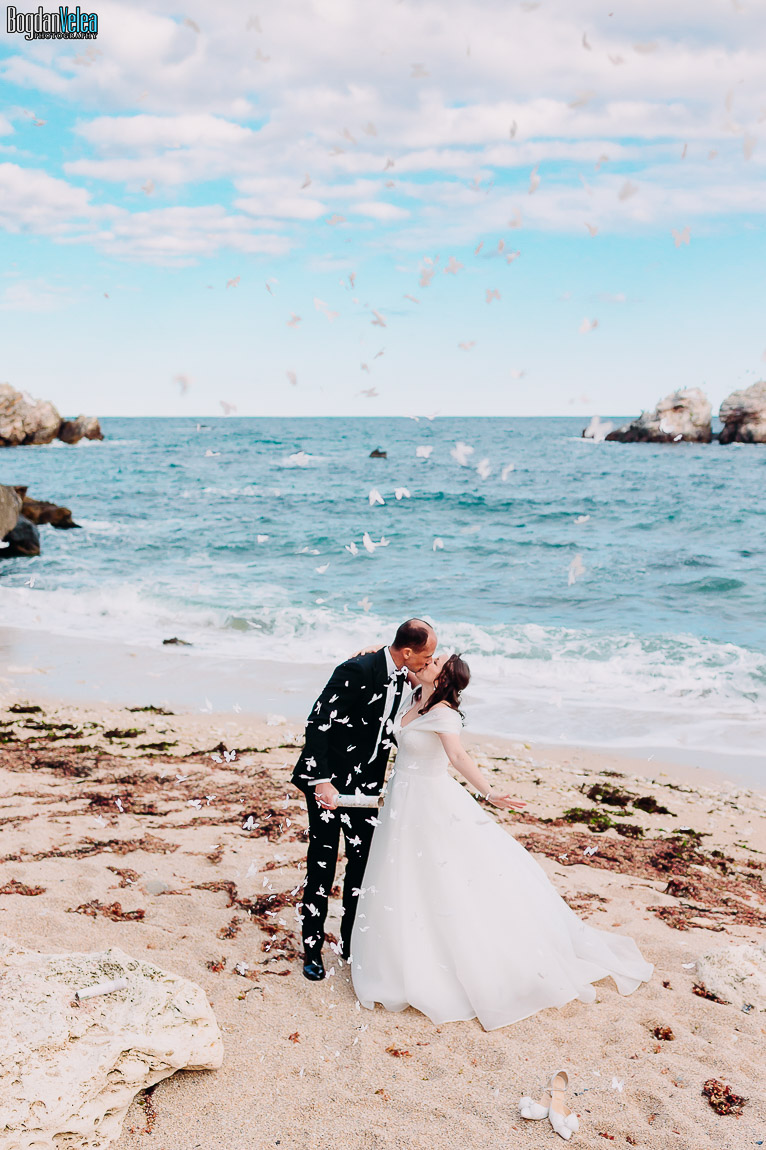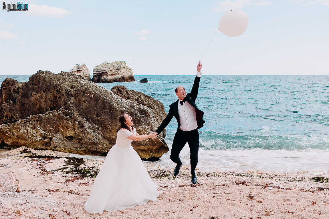 Cu Daniela și Florin am continuat povestea lor în Bulgaria, în locuri spectaculoase de pe malul Mării Negre. A fost o ședință foto după nuntă trăită exact așa cum au simțit: natural, fără machiaj, fără reguli stricte. Spre finalul zilei au renunțat la pantofi și au intrat desculți în apă, bucurându-se pur și simplu de moment.