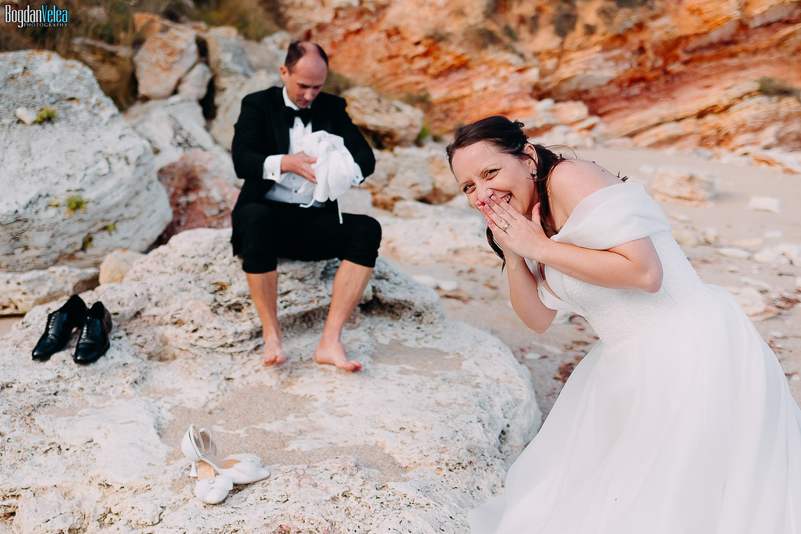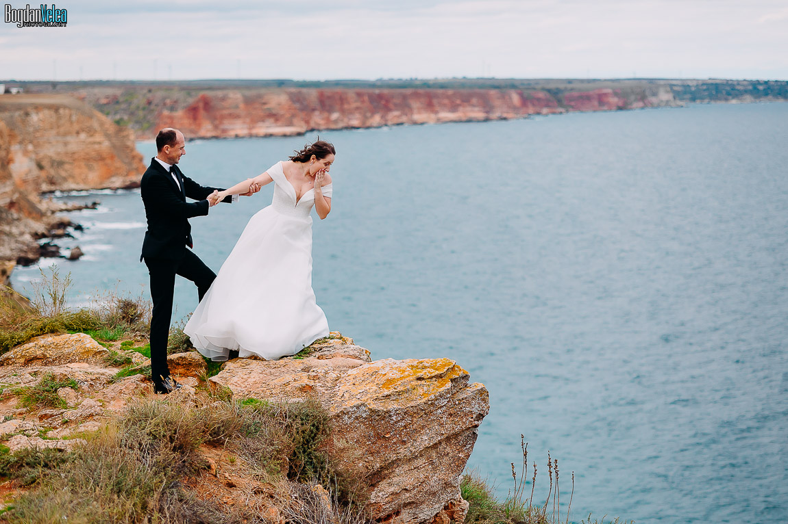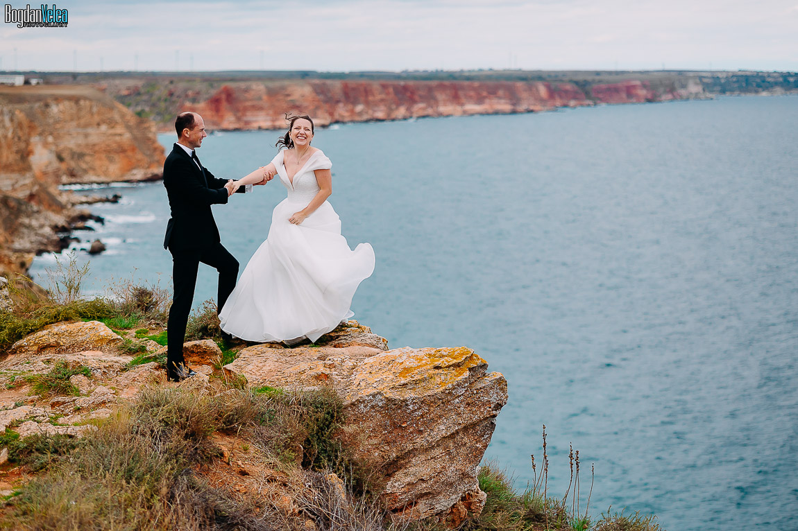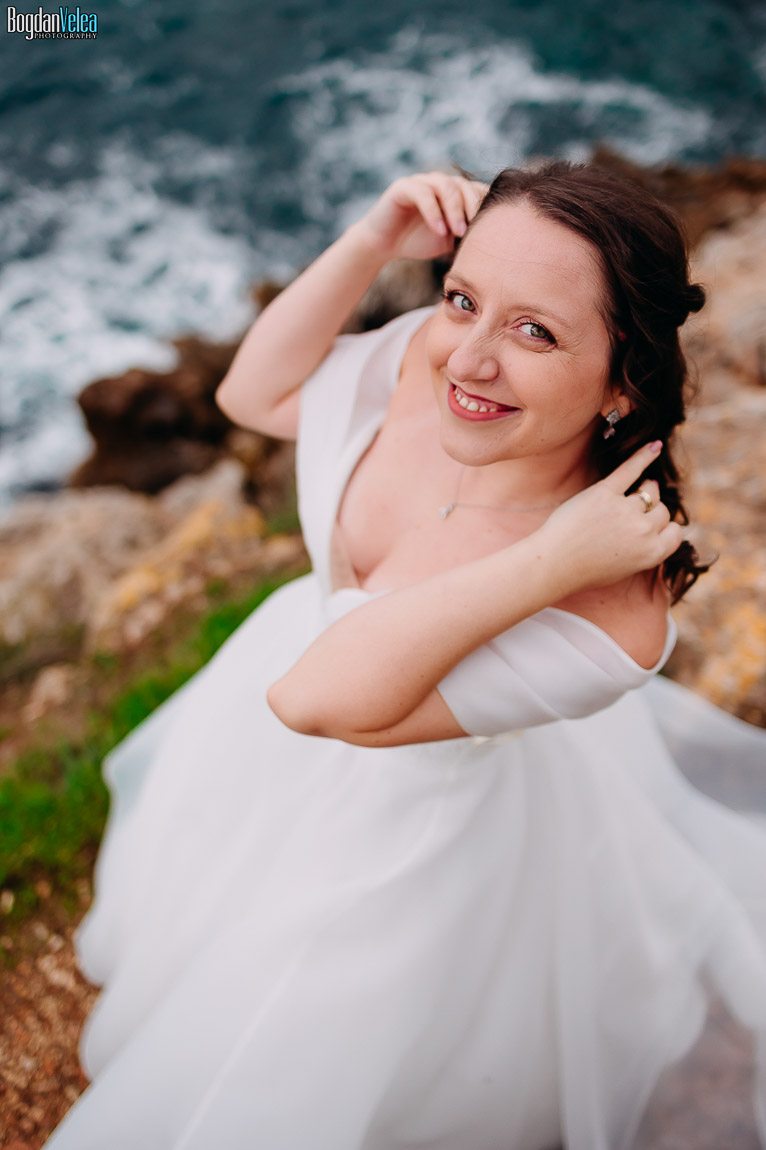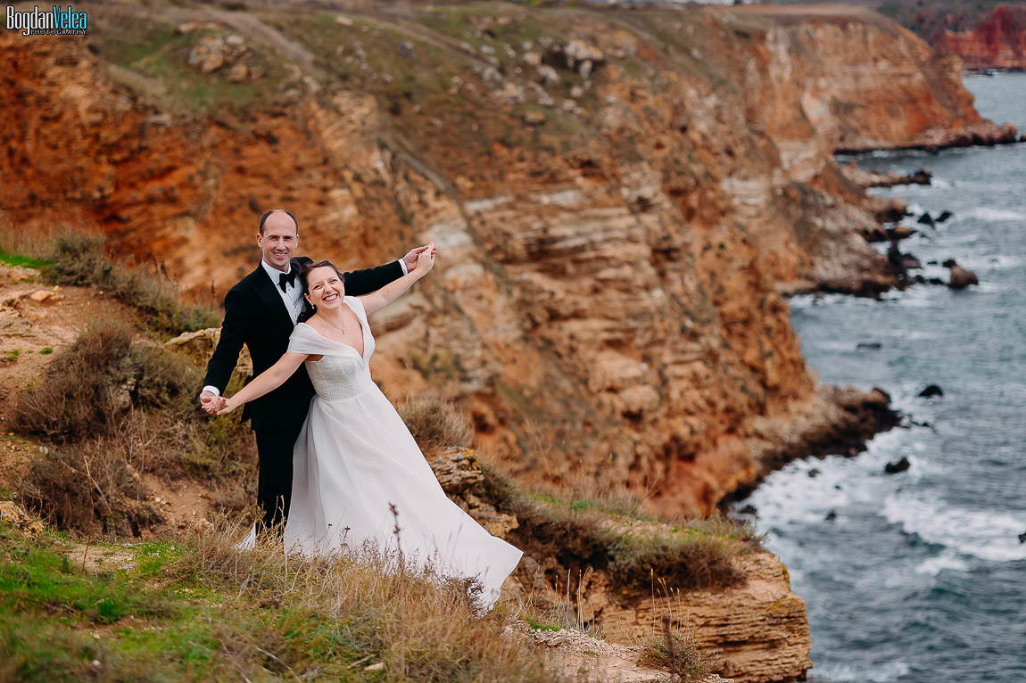 Cu Daniela și Florin am continuat povestea lor în Bulgaria, în locuri spectaculoase de pe malul Mării Negre. A fost o ședință foto după nuntă trăită exact așa cum au simțit: natural, fără machiaj, fără reguli stricte. Spre finalul zilei au renunțat la pantofi și au intrat desculți în apă, bucurându-se pur și simplu de moment.